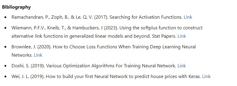 ReLU was selected for all layers except the output due to its effectiveness and wide acceptance in deep neural network training. For the output layer, the softplus function was used due to its ability to handle positive outputs, which was suitable for our regression tasks (Wiemann et al., 2023).