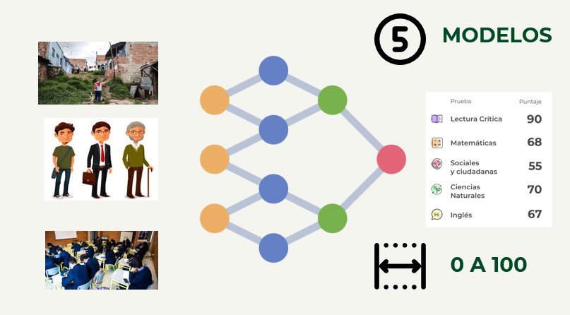 -Five neural network models were trained to predict scores in different academic competencies (English, Mathematics, Social Sciences, Natural Sciences, Critical Reading). Each neural network was configured with a single numerical output corresponding to one of the academic competencies.