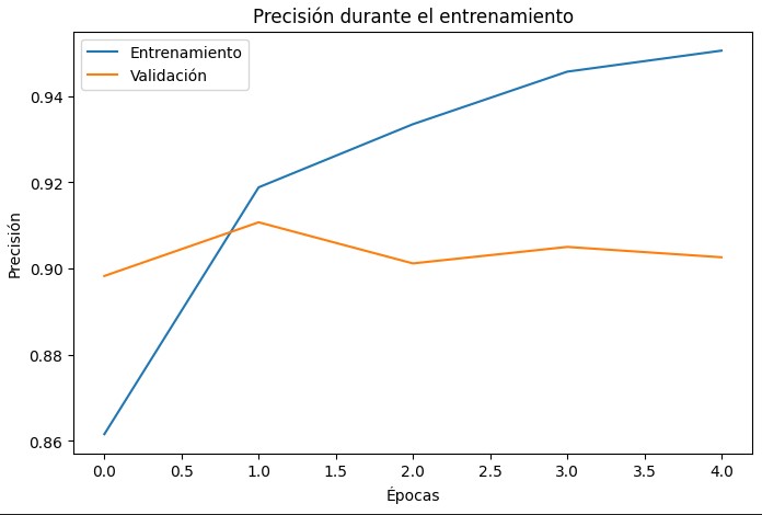The model was trained for 5 epochs with batch_size=128. The precition in validation change between 89-91% during the 5 epochs (See the graph below)